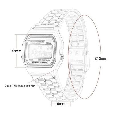 النمط: عشوائي :لا : إلكترونية : 37mm : 10mm : التاج الحلزوني : مرآة زجاجية منتظمة: مشبك حدوة الحصان : الفولاذ المقاوم للصدأ : البلاستيك :مربع : سبيكة الحديد : الأسود ، الفضة ، الذهب ، الذهب الوردي : 1 'ساعة