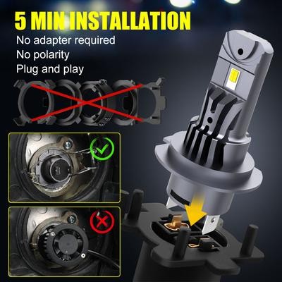 2pcs H7 LED مصباح أمامي قوي المصباح Mini Wireless 40000LM 6500K CSP للسيارة الصمام الثنائي التلقائي