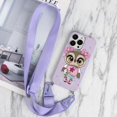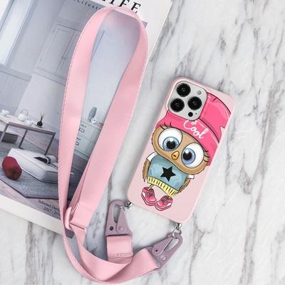 Cartoon Owl Cute Dog Strap Phone Case with Cord for iPhone 13 12 11 Pro Max x