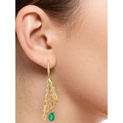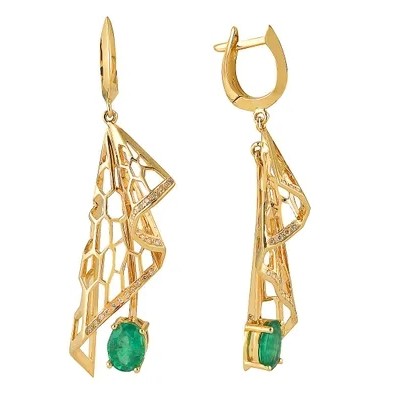 أقراط صفراء أنيقة (الليمون) الذهب مع الزمرد والماس للمناسبات الخاصة والأحداث المهمة.