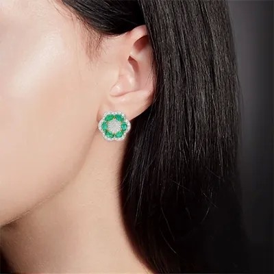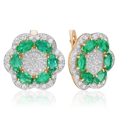 титульная страница > مجوهرات > أقراط بلاتينا مع قفل إنجليزي مصنوع من 585 من الذهب الأحمر مع الزمرد والماس