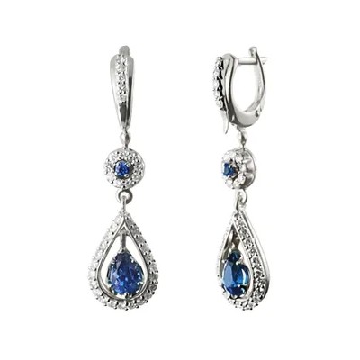أقراط أنيقة مصنوعة من الذهب الأبيض مع الياقوت الطبيعية والماس للمناسبات الخاصة والأحداث المهمة.